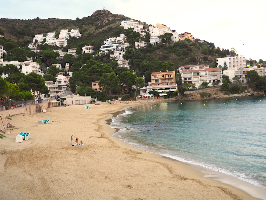 We are not stopped a customs and proceed back to Spain. We drive three hours. Though longer than I would like, the drive takes us through a bit more of the Pyrenees, which makes it tolerable. Later we hit foot hills and farm country. Eventually we arrive in the seacoast town of Roses. It is near the Salvador Dali museum in Figueres. Roses will be our base for trips to Barcelona by high speed train, as I do not want to drive into the city. Our condo is very high on a hill above the beach town. The lower hills are dotted with condo buildings mostly white and not too architecturally pleasing. But it is still a very pleasant view. We have a large patio and lookout over a lovely little bay and beach. The place is quiet, as we are off season and it may be too cold to swim. I hope we get at least one dip as the beach below us is splendid.