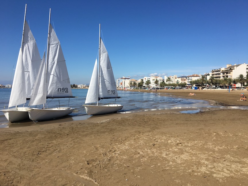 It is Friday, pleasant and sunny. We go to Roses and park and take a long walk long its extensive beach and harbor. We stop at the tourist office in Roses and we are coached to go to the Figueres train station early and work until we find the parking. Parking can be a really tough problem in Spain’s cramped cities, you never know. We planned to go to Barcelona on Saturday, but the weather is bad there until Monday. We will stay here, an hour to the north, where the sun should shine.