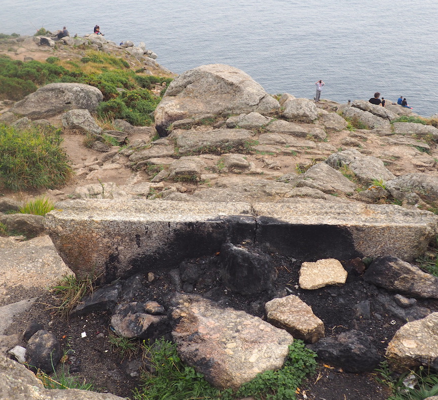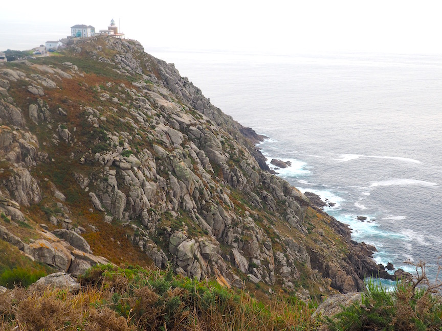 When I chose Fisterra as our west coast stop on the trip, I knew little about it except it would be by the sea. Later I learned it was the far end of the Camino de Santiago de Compostella. The pilgrims’ goal is to reach the Cathedral of Santiago de Campostella, having started hundreds of miles away on the west coast of France. They have walked to the cathedral to purge their sins and they technically finish there. But many want to go to the Atlantic coast, to finish more poeticly. So they walk another 100 miles to Fisterra. For centuries, Fisterra was considered the most western part of Spain. Apparently modern technology has proven this is not quite so. But good geography be damned, it is good enough for the hikers. Once they reach the little port of Fisterra, they make a final 2 kilometer climb to the end of the peninsula and the famous lighthouse. On this rocky outpost on the Atlantic coast they burn their socks. Why not!
