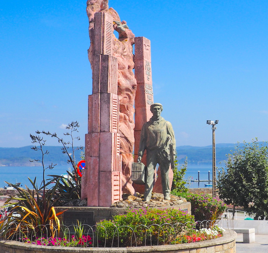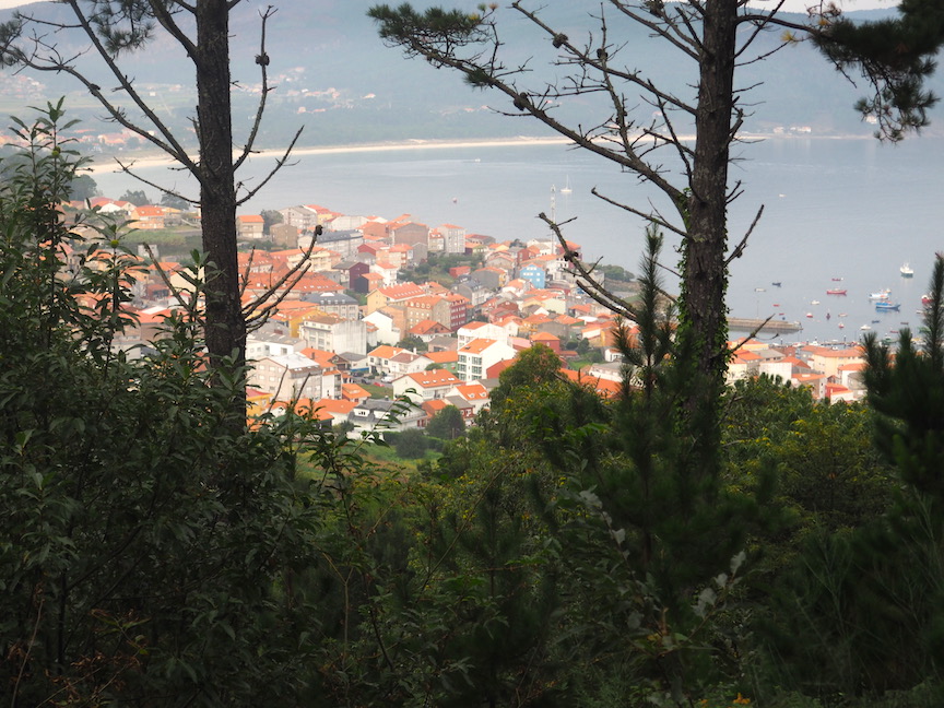 The dirt road leads back to the town. We have a beer and scout restaurants. Tired from the long walk, we trudge the uphill route home for a shower. Later, we drive to town and eat at “O Centolo”, a restaurant recommended by the condo owners. Ana is frustrated by the Spanish names for the seafood on the menu. Even though she speaks Spanish, Puerto Ricans use different words for the seafood. Perhaps the words are partly from the Galician language, which is a mix of Spanish and Portuguese. We have fried squid again. It is good and we have a nice salad of fruit and cheese and greens with a sweet dressing. We finish up with clams in a milky sauce. Then, Ana orders a small, but nice, chocolate cake with chocolate sauce inside. It is served with vanilla ice cream. We share this treat as well. We have had a very nice day in Fisterra.