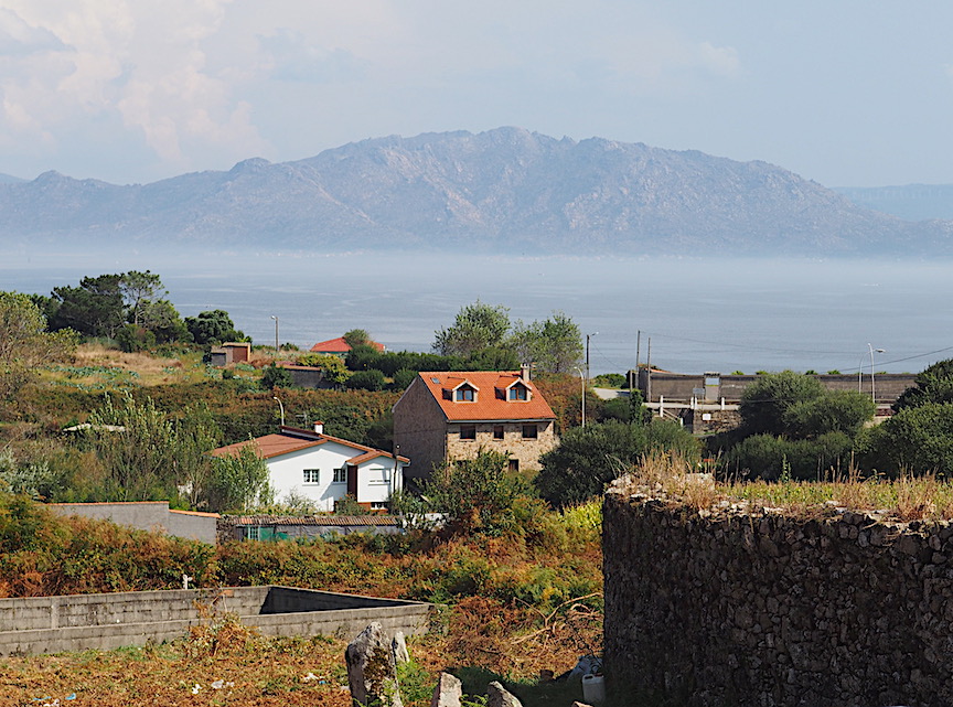 We eat breakfast inside to avoid the noise of the worker’s machine. Later, we bring out our coffee to sit on the patio, but the sun, higher now, makes it too hot and too bright to sit there long. We walk down the hill to town and find our late start has caused us to miss the public market along the harbor. We regret this. We find a supermarket and buy some local cheese, and wine, along with some fruit then carry our load up the hill. The town itself is old, but one sees the newer condos and hotels, not the ancient village. These buildings for the most part are a disappointment after lovely Salamanca. My phone map tells me that we can ascend along the roads behind the condo to find a path that will take us to the lighthouse. I suggest a walk to it and we set out after a light lunch on the local cheese and fruit. (The Glacian cheese is soft and spongy, but has a good taste…a bit like swiss cheese, but not as strong.) We set out, heading uphill along narrow roads behind our condo, but Ana is not happy with the unmarked route that I have chosen. We ask a walker if this is the way to the lighthouse, but she is Swedish and is trying to find a beach and knows nothing about the area. The police idle by down the hill and we ask. They say go back to town and take a 2 km walk along the sea which will all be uphill. Obviously, we look too old to them for the hike. At the condo, I decide to prepare better for the hike. We change to boots and get some water and my backpack for rain gear, as the sunny skies are clouding over.